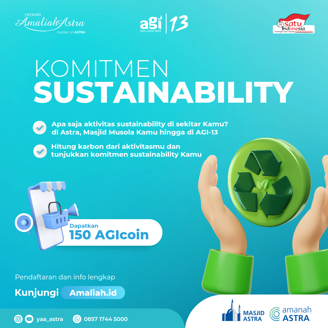 Komitmen SUSTAINABILITYDapatkan 150 AGIcoin untuk komitmen sustainability kamu di Amaliah.id.