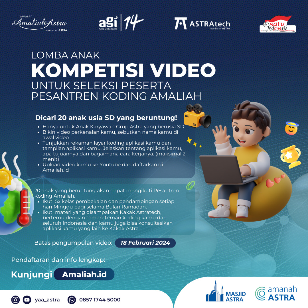 seluruh lomba dan kegiatan AGI, pendaftaran dan info lengkap kunjungi di sini: https://amaliah.id/agi2024