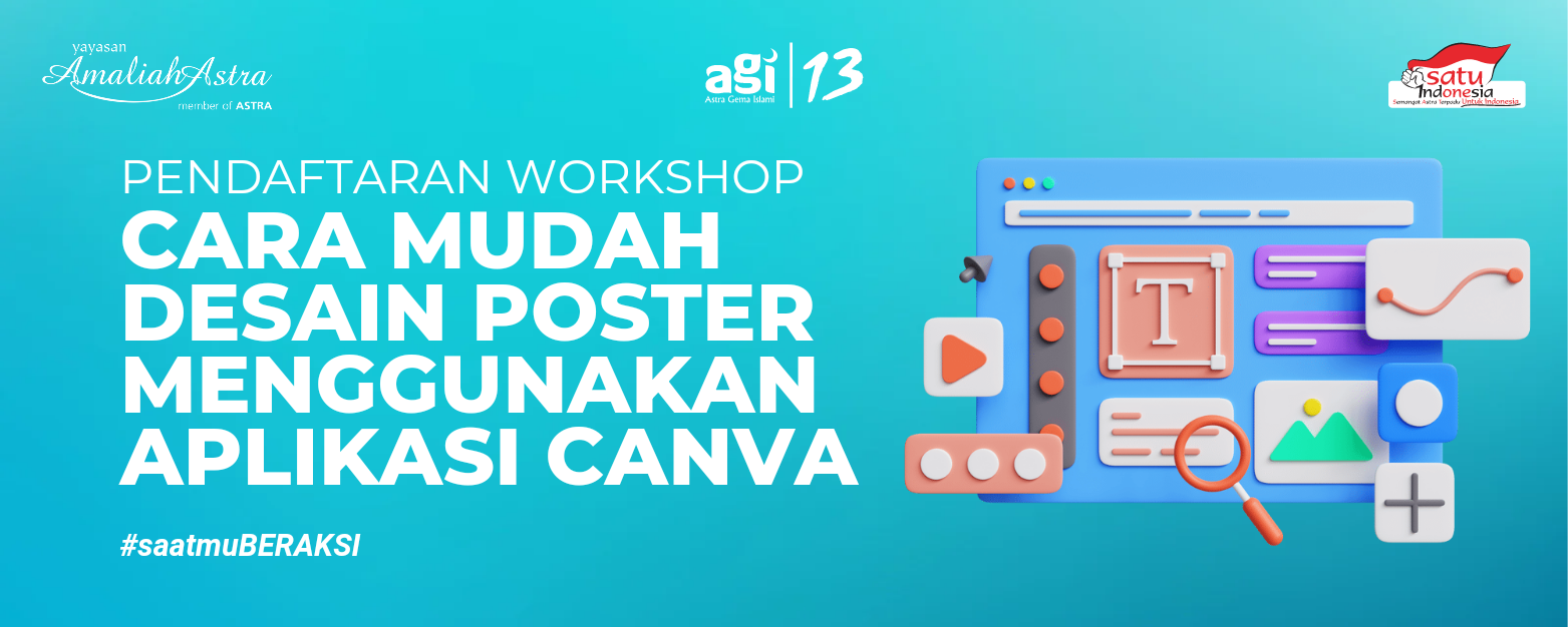 untuk teman teman relawan AGI, hampir seluruh desain pakai Canva yang bisa dikerjakan secara kolaborasi bareng untuk beberapa personel
