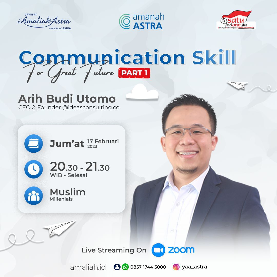 Mas Arih Budi Utomo, sedang ada training gratis yang berkelanjutan. Yg berminat dan mau belajar komunikasi bisa join kelas nya jumat ini ya khusus temen” grup Astra 😊🙌🏻