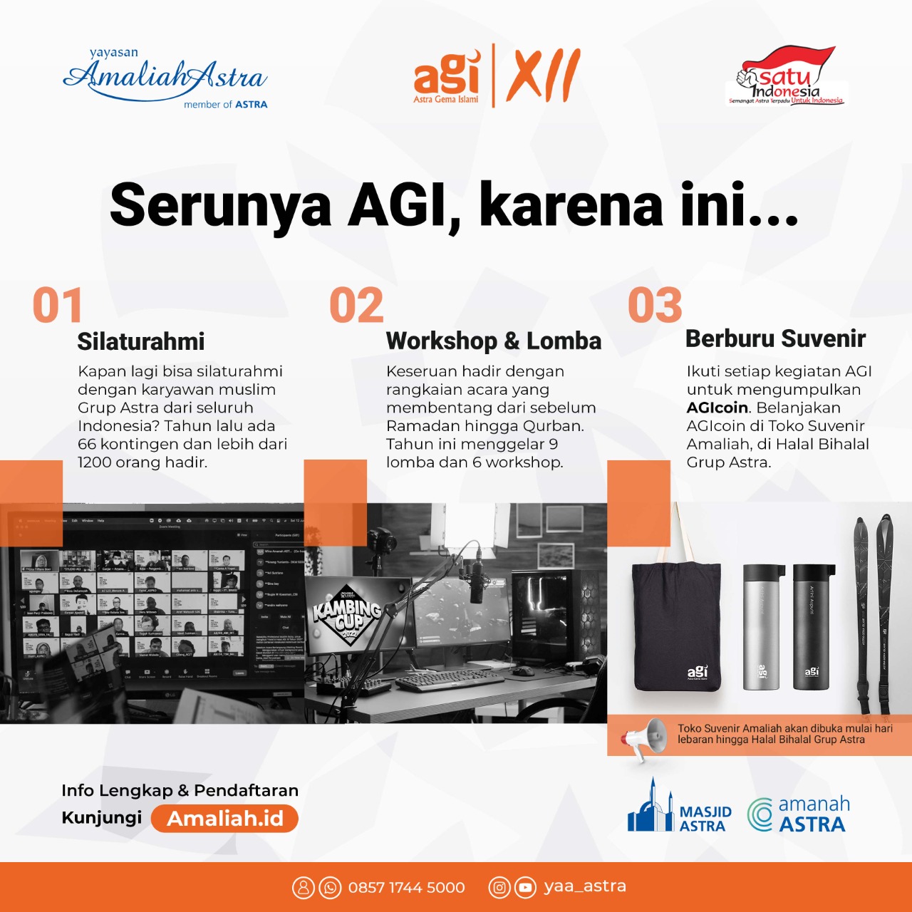 Mari, daftarkan diri kamu di AGI 2022 dan dapatkan souvenir di amaliah.id saat acara puncak yakni Halal Bihalal Grup Astra!✨