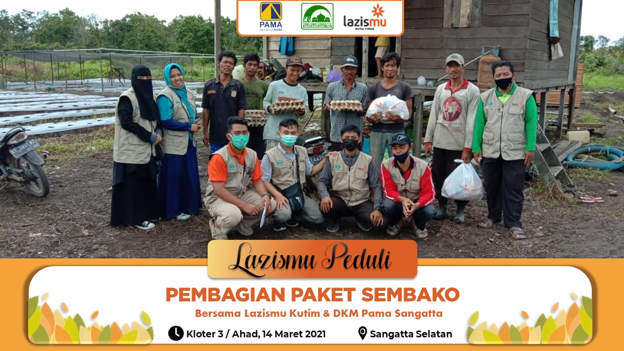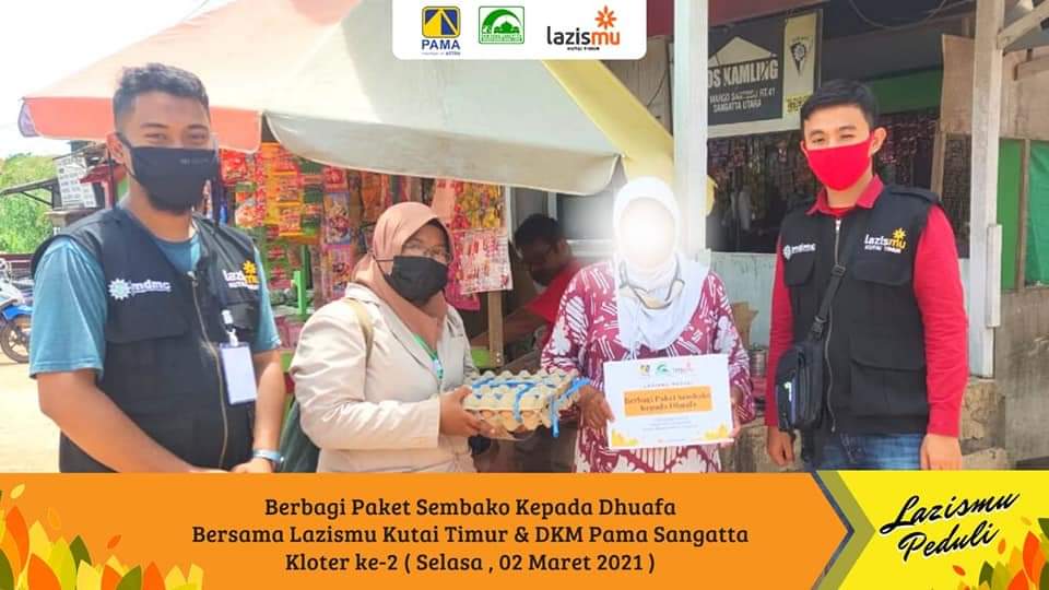Program Lazismu Peduli ( Pembagian paket sembako bersama Lazismu Kutai timur & Dkm PAMA Sangata ) pada hari selasa , 2 Maret 2021.
