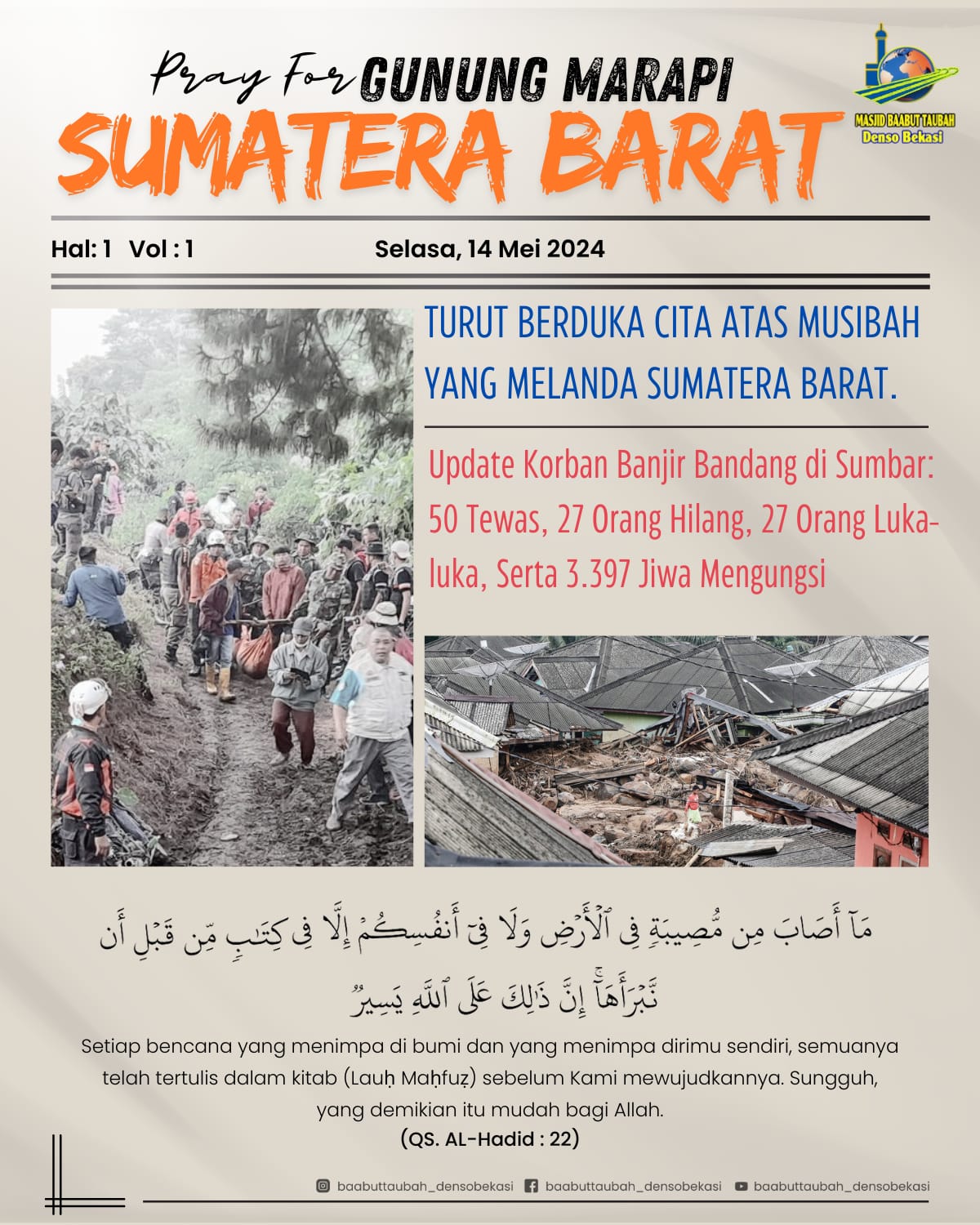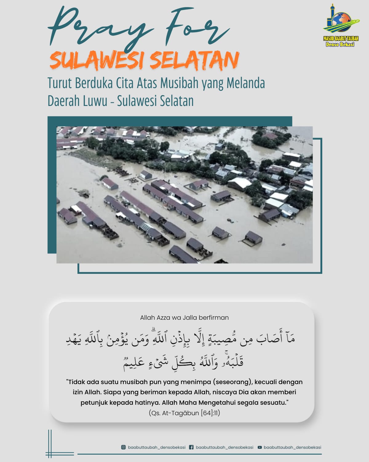 Semoga setiap musibah yang telah terjadi bisa menjadikan pelajaran dan dapat meningkatkan keimanan serta ketakwaan kepada Allah ﷻ. Allah ﷻ berfirman:
