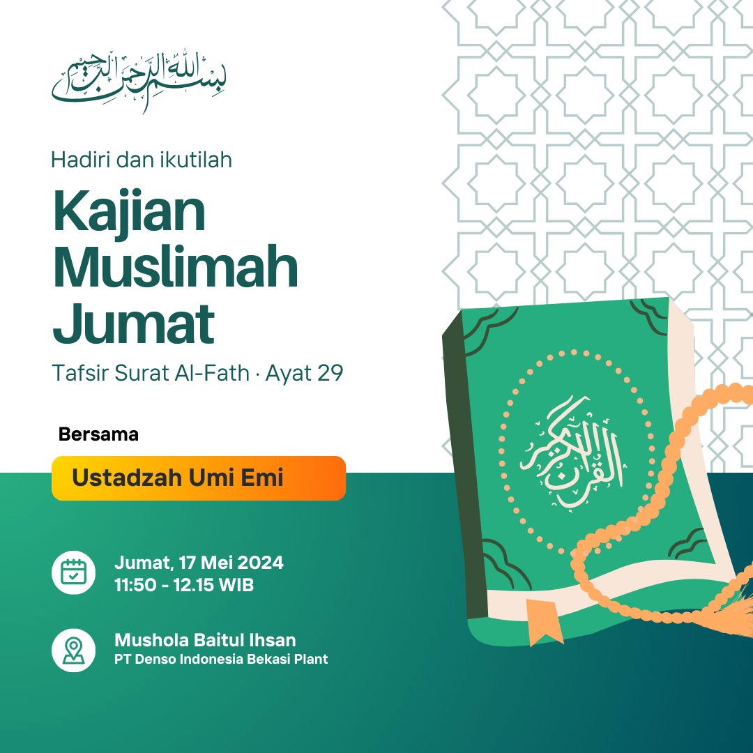 Jangan sampai terlewat ya Kajian Muslimah Jumat Barokah hari ini ya 😊,Insyaa Allah :