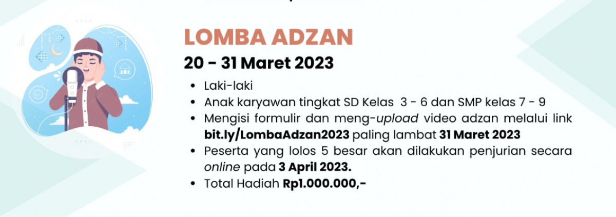Ayo ajak putra Bapak dan Ibu untuk berpartisipasi dalam Lomba Adzan AAIJ 2023. Semoga menjadi ladang pahala buat Bapak dan Ibu dan sang Putra.
