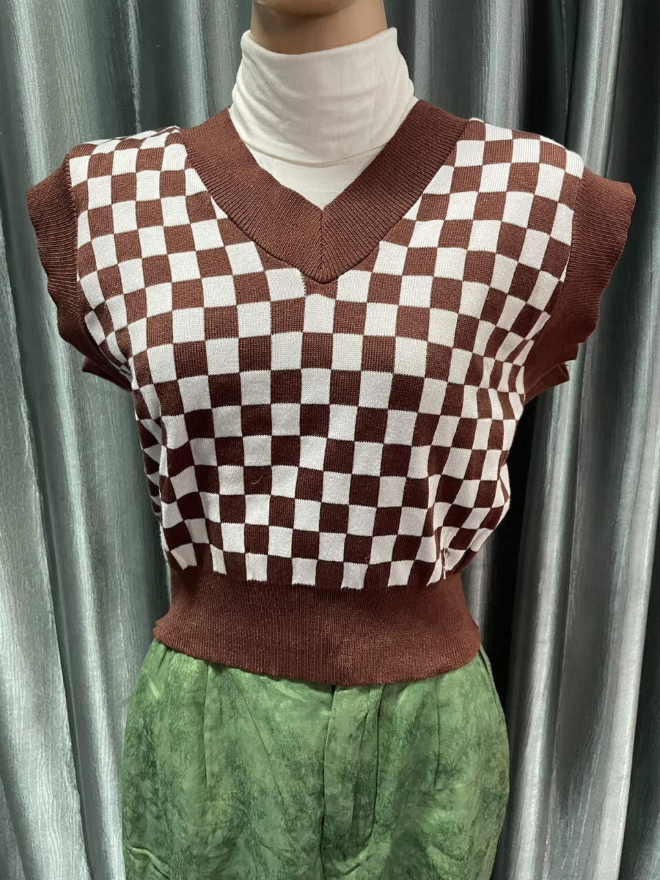 Outer Vest Rompi Rajut Houndstooth Premium
