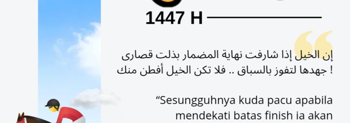 “Sesungguhnya kuda pacu apabila mendekati batas finish ia akan mengerakan (semua) kemampuannya untuk memenangkan perlombaan. Jangan sampai kuda pacu menjadi lebih cerdas darimu.”