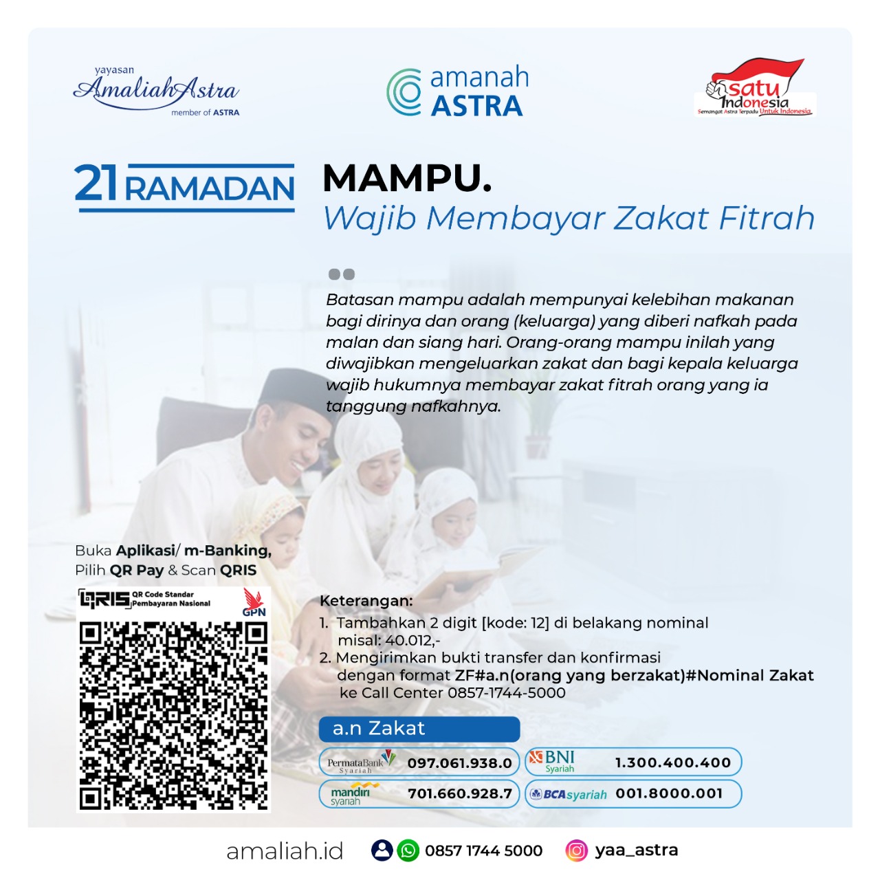Bukankah menjadi lebih tenang, saat yang wajib sudah ditunaikan. Jangan sampai terlewat keluarga yang juga ikut dibayarkan zakat fitrahnya. Menunaikan ibadah karena Allah, menjadi berkah untuk yang menerimanya.