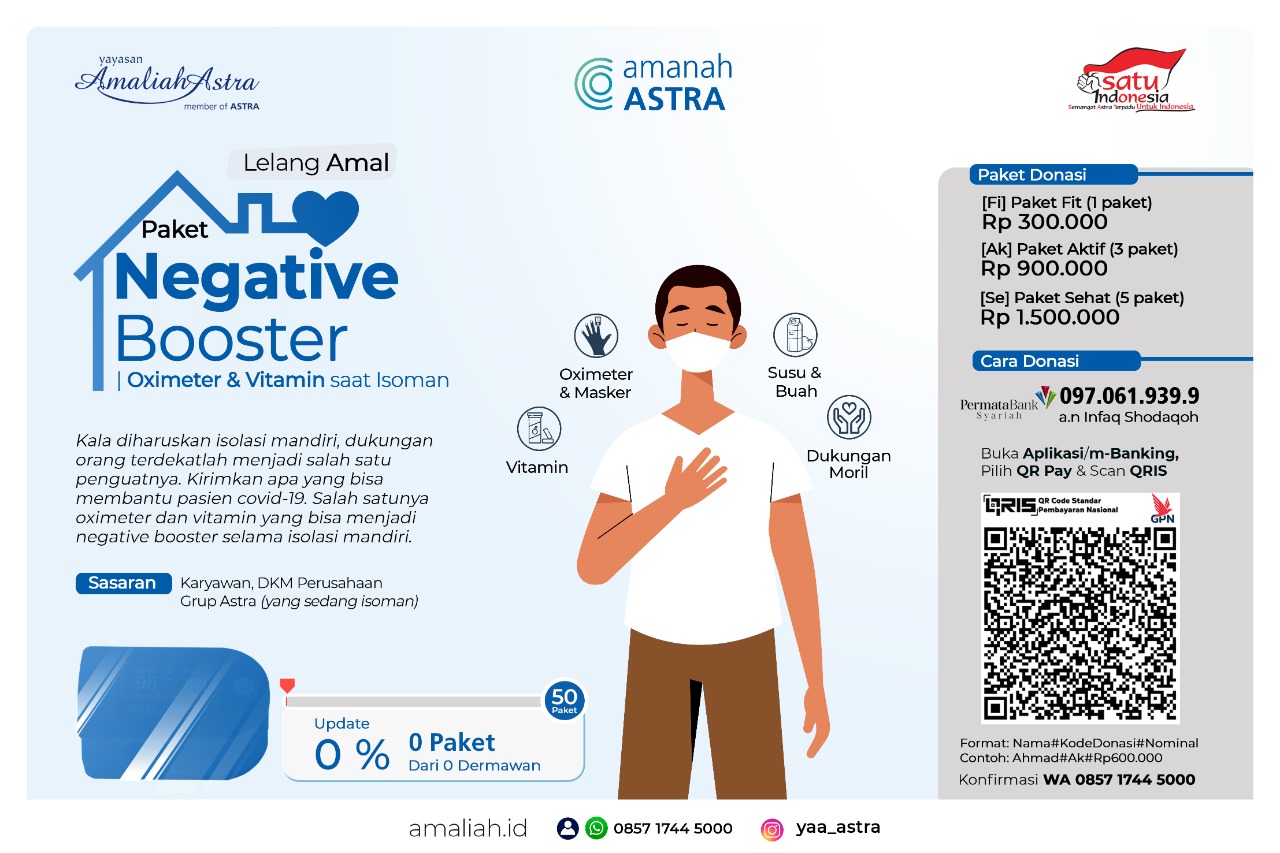 Paket Negative BoosterSupport orang terdekat kita yang sedang jalani isoman. Dengan kirimkan paket _negative booster_ (oximeter dan vitamin)