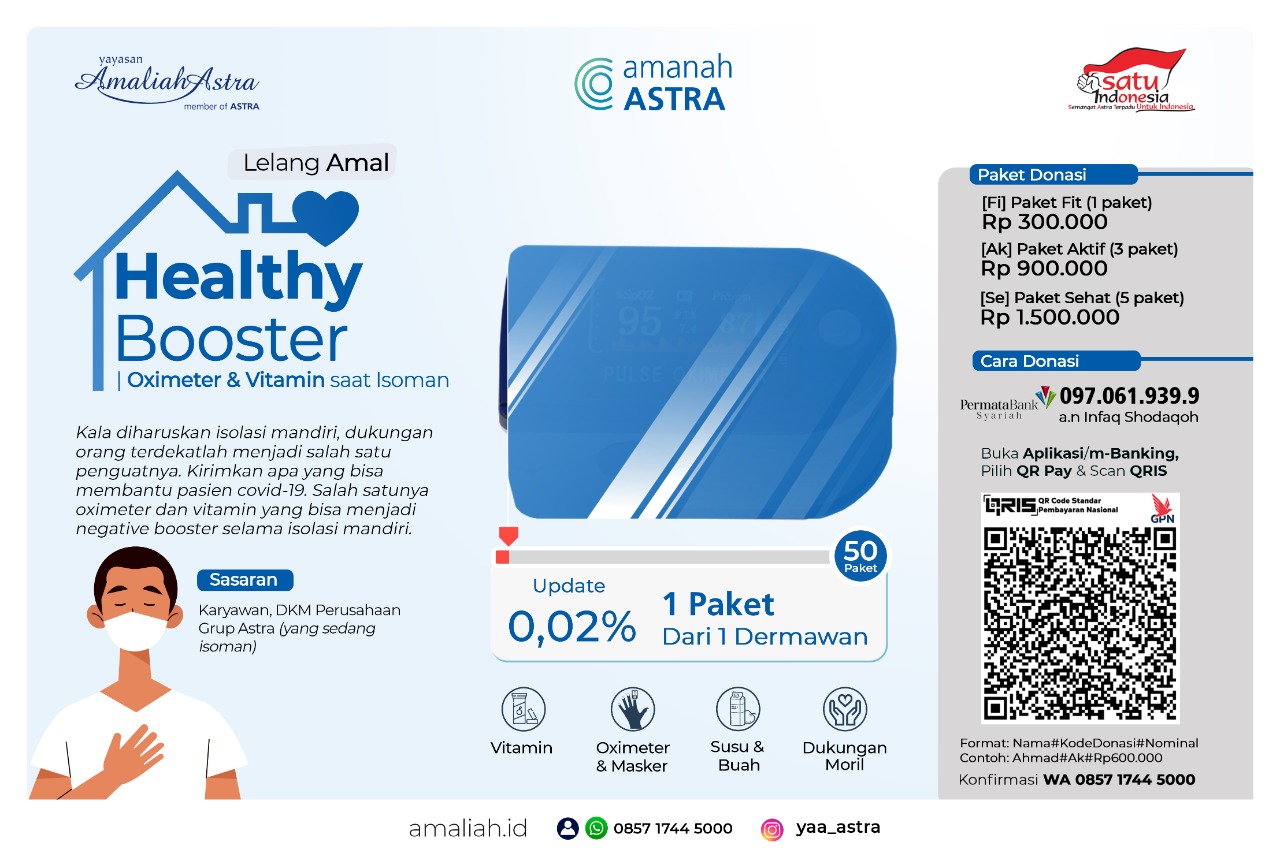 Update Healthy Booster : 0,02% | 1 PaketSebagai bentuk dukungan dan penyemangat. Yuk kirimkan paket kesehatan untuk saudara-saudara kita yang menjalani isoman. Secara langsung Anda membantu pemulihan mereka. Tak terbayang seberapa luas kebaikan yang akan berbalas kepada Anda.