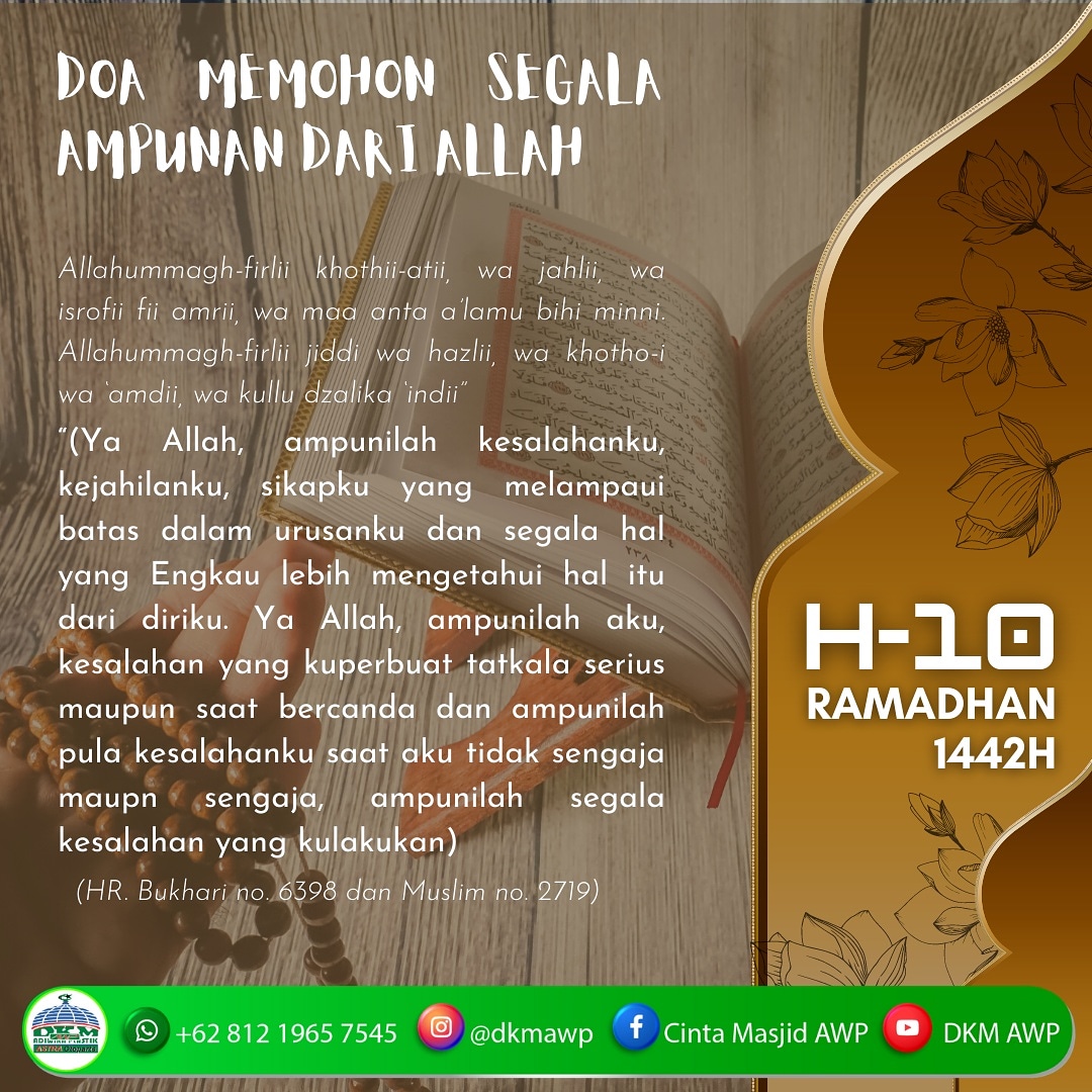 4 tahun yang lalu PublikSalah satu persiapan untuk menyambut ramadhan adalah dengan banyak bertaubat dan memohon ampunan kepada Allah Ta'ala. Salah satunya adalah dengan membaca doa di atas.