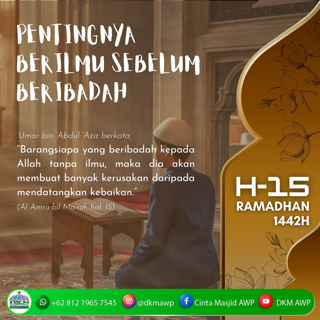 4 tahun yang lalu PublikKita harus memiliki ilmu tentang ibadah sebelum kita melaksanakannya, agar ibadah kita menuai manfaat, berfaedah, dan tidak asal-asalan.