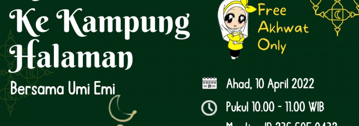 Sahabat Muslimah yang dirahmati Allah swt., mari kita ikuti Kajian Muslimah dengan tema "Kembalilah ke Kampung Halaman!" ? yang insyaa Allah akan diselenggarakan pada: