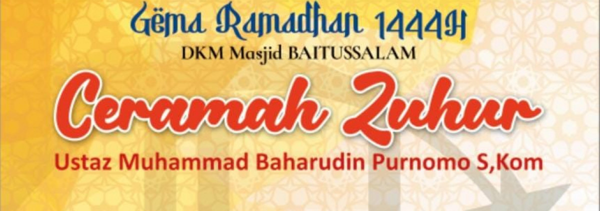 Hadirilah Ceramah Bakda Sholat Dhuhur hari ini Selasa 4 April 2023/13 Ramadhan 1444H di Masjid Baitussalam PT Akebono Brake Astra Indonesia dengan pemateri Ustaz Muhammad Baharudin Purnomo, S.Kom.