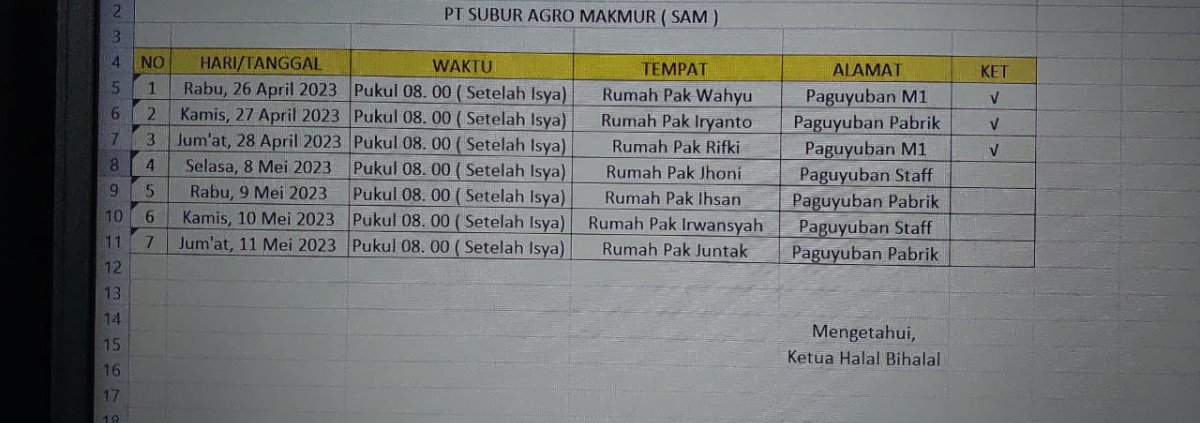 Assalamualaikum wr wb Hari raya idul fitri adalah moment berkumpul nya para keluarga dan sahabat. Maka untuk mempererat tali silaturahmi kami mengadakan acara halal bihalal keliling di emplasement pabrik.