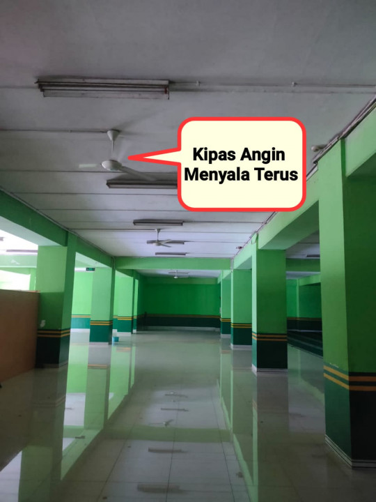 Kipas Angin menyala 24 jam di saat jamaah tidak ada di mesjid (Listrik Terbuang sia-sia)