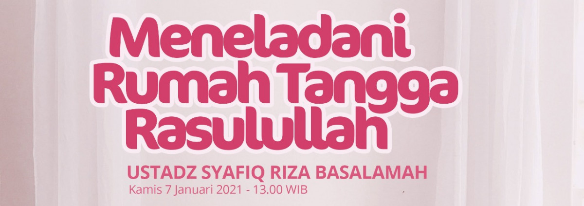 Meneladani Rumah Tangga Rasulullah | Ustadz Syafiq Riza Basalamah Kamis, 7 Januari 2021 - 13:00 WIB Join Zoom Meeting https://us02web.zoom.us/j/84871571782?pwd=dWsyczh1bjJvVC9STXNRUWoxREpGZ… Meeting ID: 848 7157 1782 Passcode: ASTRA