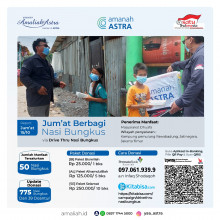 Jum'at Berbagi via Drive Thru Nasi BungkusNikmatnya berbagi bahagia, ditengah hari Jum'at ini. Alhamdulillah sebanyak 150 nasi bungkus bisa dibagikan kepada saudara-saudara kita yang membutuhkan.