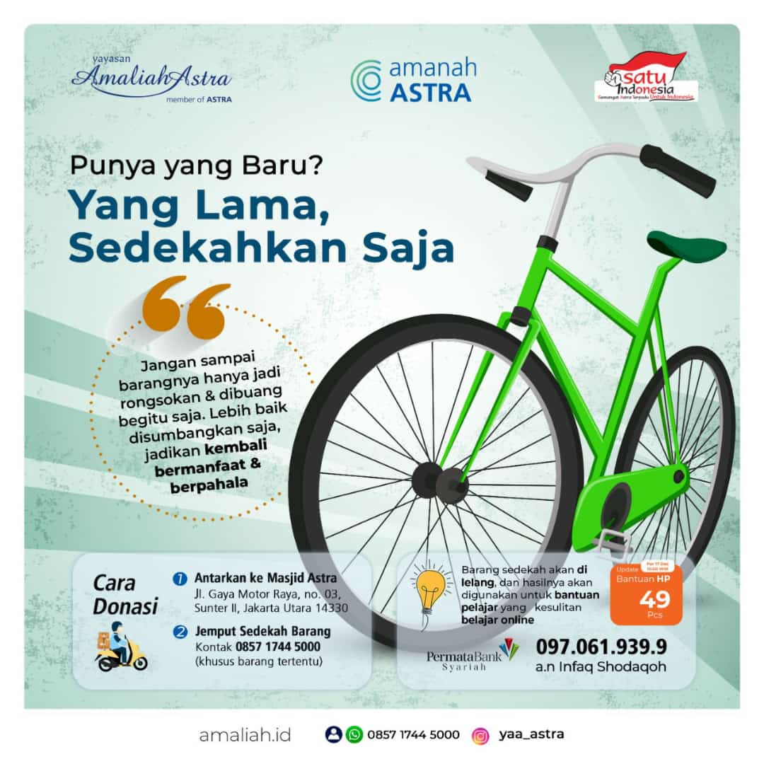 Nah daripada hanya jadi rongsokan dan dibuang begitu saja, mending disedekahkan. Jadikan kembali barangnya bermanfaat& bernilai guna.