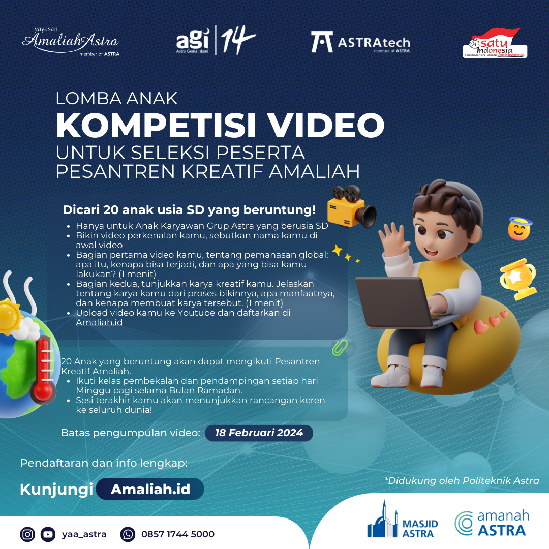 Hanya untuk Anak Karyawan Grup Astra yang berusia SD- Bikin video perkenalan Kamu, sebutkan nama Kamu di awal video
