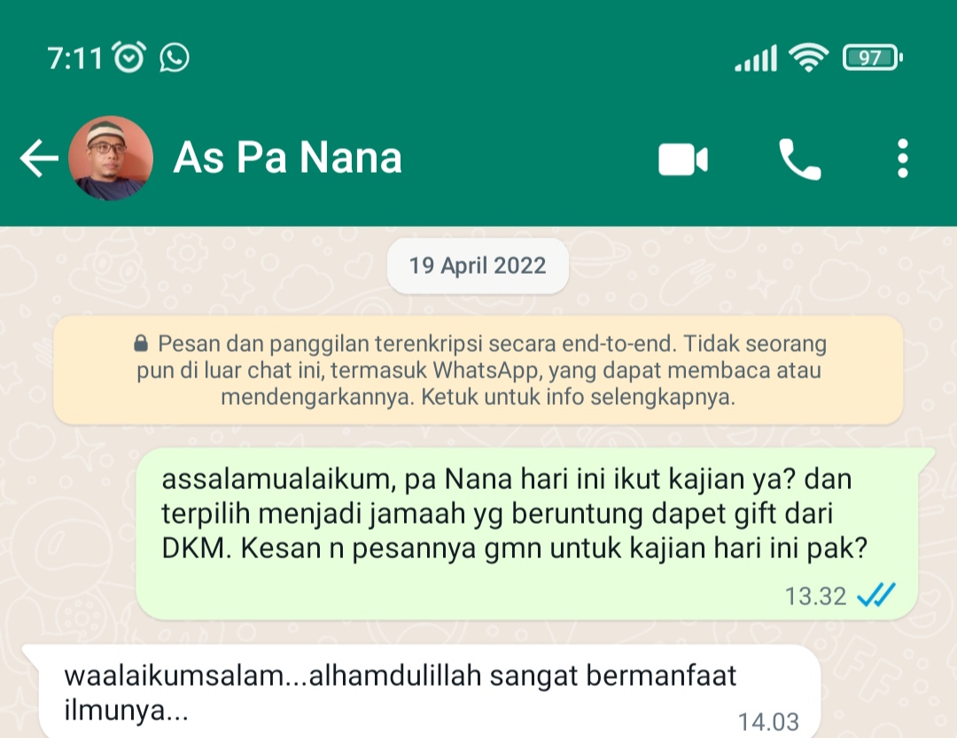3 years ago PublicAllhamdulillah menjadi sebuah kebahagiaan tersendiri dapat menjadi bagian dari kebaikan, saat kegiatan / kajian yg diberikan Dkm kepada karyawan dapat bermanfaat.