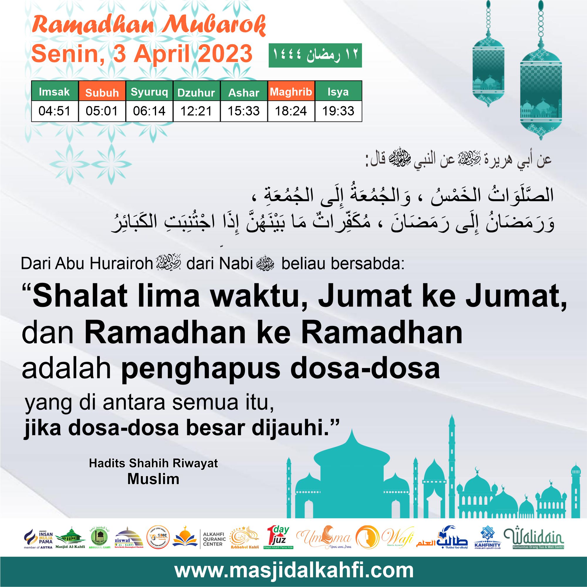 “Shalat lima waktu, Jumat ke Jumat, dan Ramadhan ke Ramadhan adalah penghapus dosa-dosa yang di antara semua itu, jika dosa-dosa besar dijauhi.” HR. Muslim