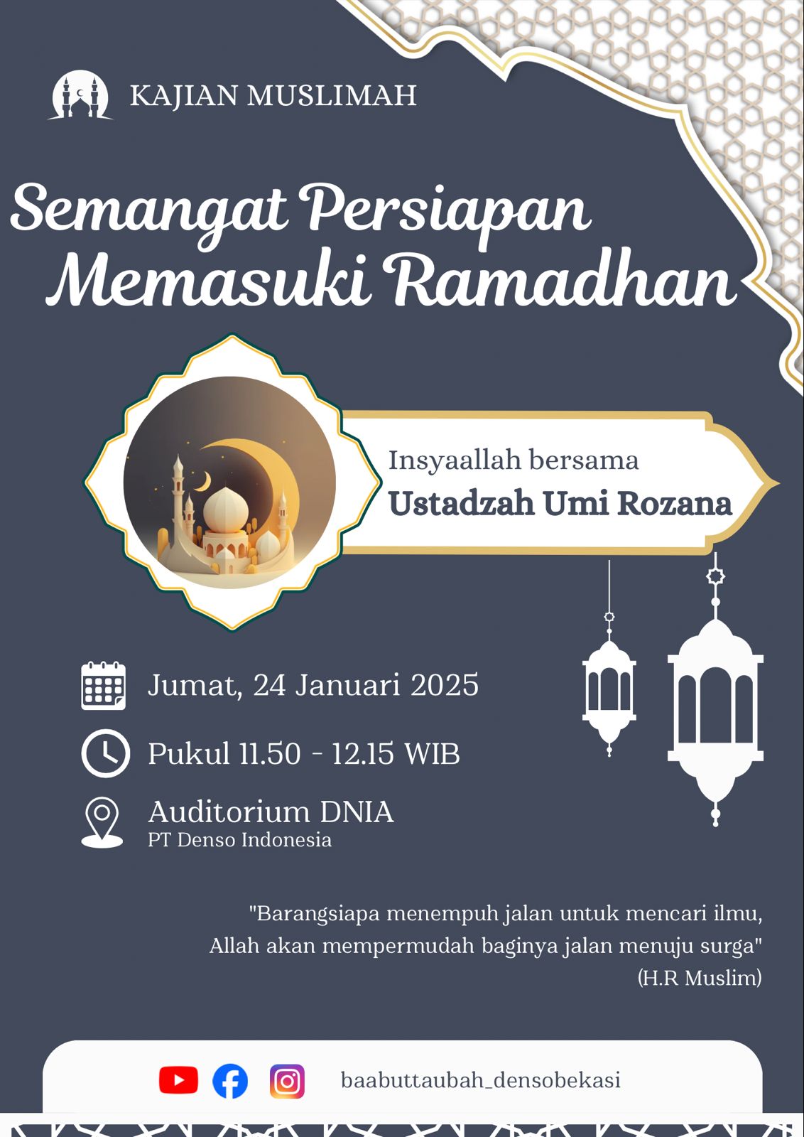🕌 *Masjid Baabut Taubah PT.Denso Bekasi Plant.*👳🏻♀️ *Ust. H.Nur Khozin,Lc. MA*