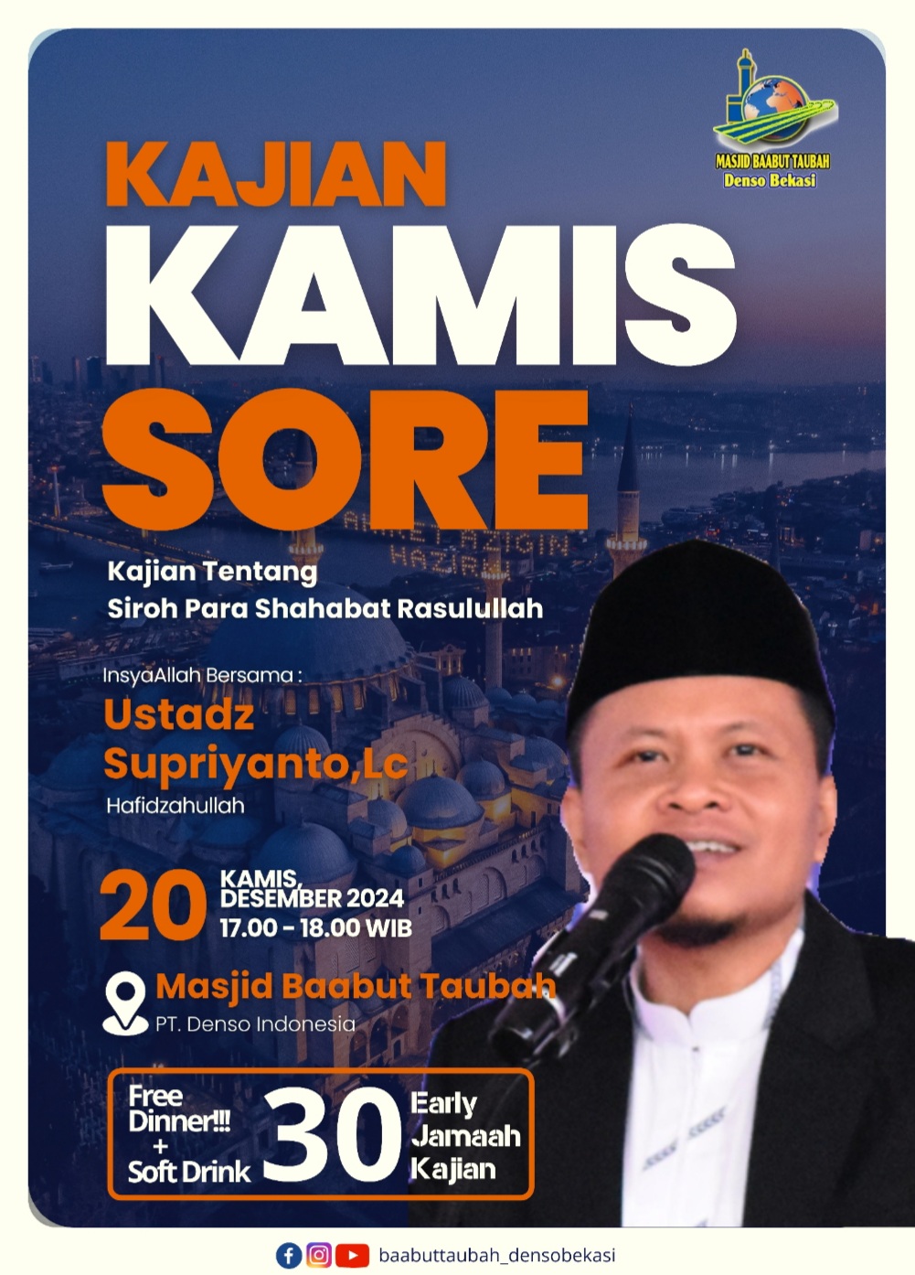*KAJIAN Rutin Kamis sore**Masjid Baabuut Taubah Denso Bekasi Plant.*