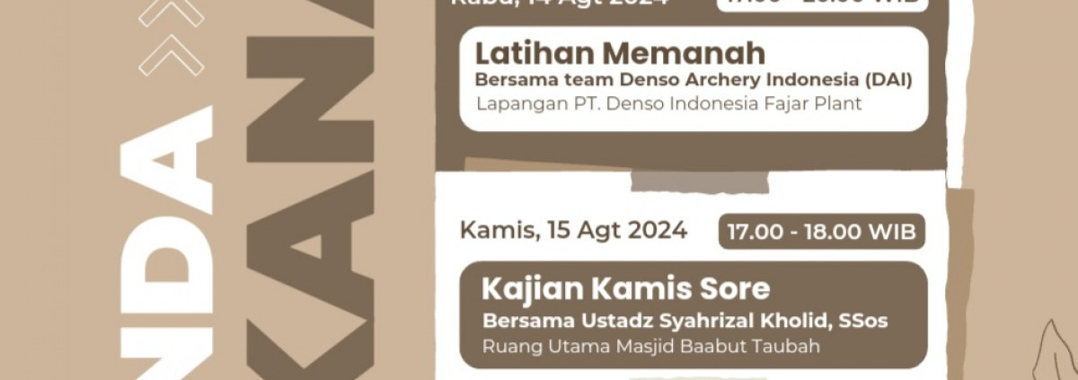 Alhamdulillah wa syukurillah,, kegiatan kegiatan DKM Baabut Taubah PT. Denso Indonesia pada bulan Agustus 2024 minggu ketiga dapat berjalan dengan baik dan lancar,, yang tentunya semua ini atas izin dan pertolongan Allah swt,,
