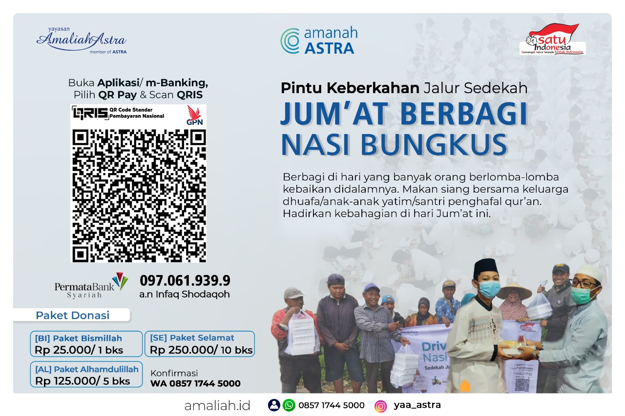 Ambil sebanyak-banyaknya berkah di hari Jum'at ini. Dari sebungkus makanan bisa menjadi sedekah yang mendatangkan pahala dan keberkahan untuk Anda.