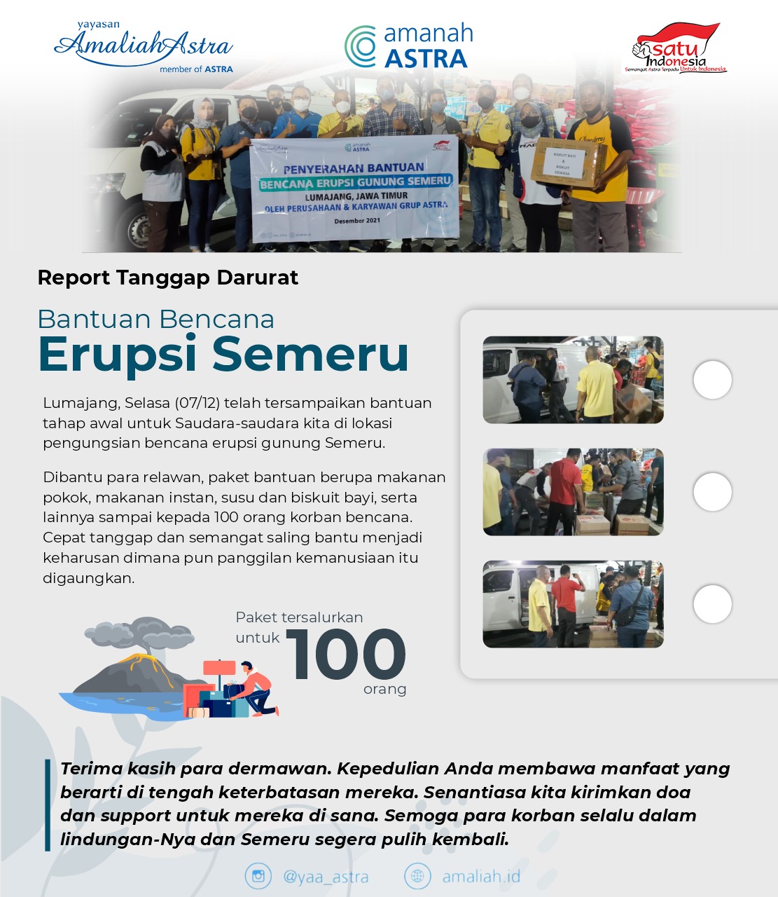 Bersama kita tanggap, saling bantu dan meringankan. Terimakasih para dermawan. Dari kebaikan Anda, banyak korban yang tertolong. Harapan kita semua semoga Semeru segera pulih kembali.