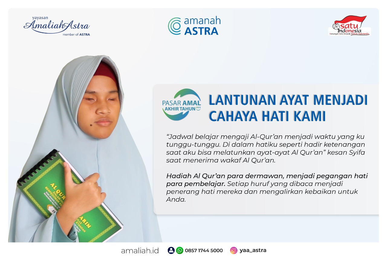 - Paket Hasanah: Rp 1.800.000,- (1 paket 30 Juz Al Qur'an Braille)