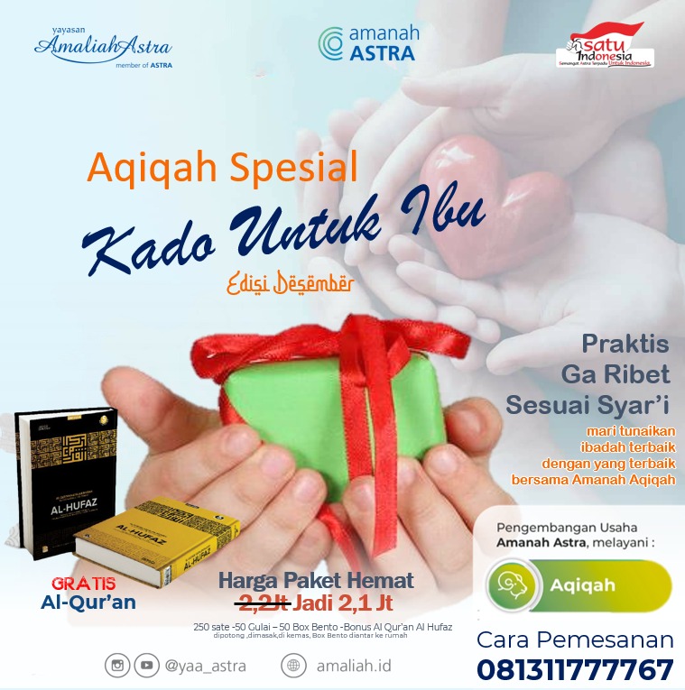 4 years ago PublicTidak perlu bingung memilihkan kado untuk bayi yang baru saja dilahirkan dapatkan kadonya dari Amanah Aqiqah sebuah Alqur’an Al Hufadz untuk penghafal Al Qur'an semoga ketika dewasa anaknya menjadi anak yang sholeh dan sholehah merupakan kado terindah buat Ibu. Yuk segerakan melaksanakan Aqiqah Untuk Info selengkapnya & pemesanan: