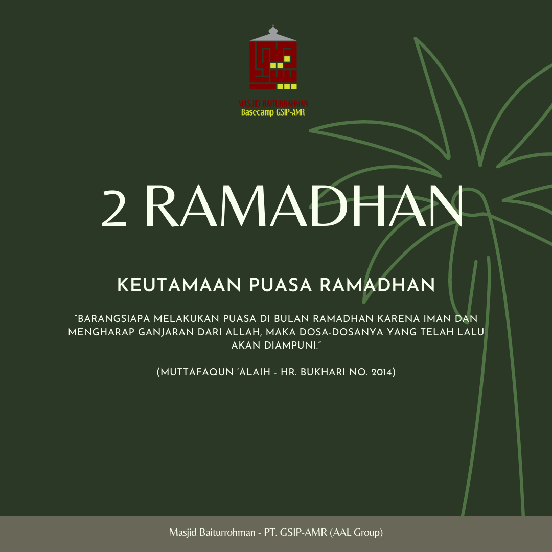 “Barangsiapa melakukan puasa di bulan Ramadhan karena iman dan mengharap ganjaran dari Allah, maka dosa-dosanya yang telah lalu akan diampuni.” (Muttafaqun ‘alaih - HR. Bukhari no. 2014)Mari optimalkan bulan Ramadhan ini dengan semaksimal mungkin. Semoga Allah memberikan kebaikan dan keberkahan kepada kita di bulan Ramadhan ini.
