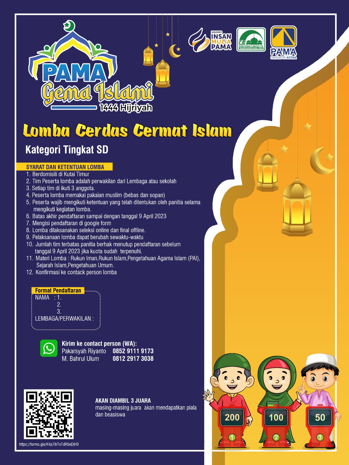 (Tingkat SD dan mewakili lembaga Atau TPQ ,3 perwakilan)