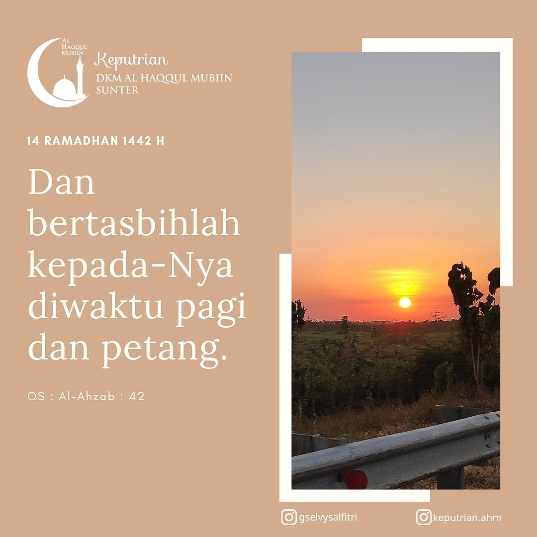 Dan bertasbihlah kepada-Nya diwaktu pagi dan petang.
