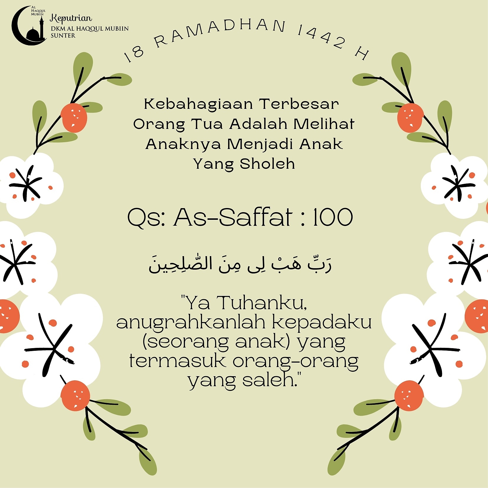 Ya Tuhanku, anugrahkanlah kepadaku (seorang anak) yang termasuk orang-orang yang saleh.