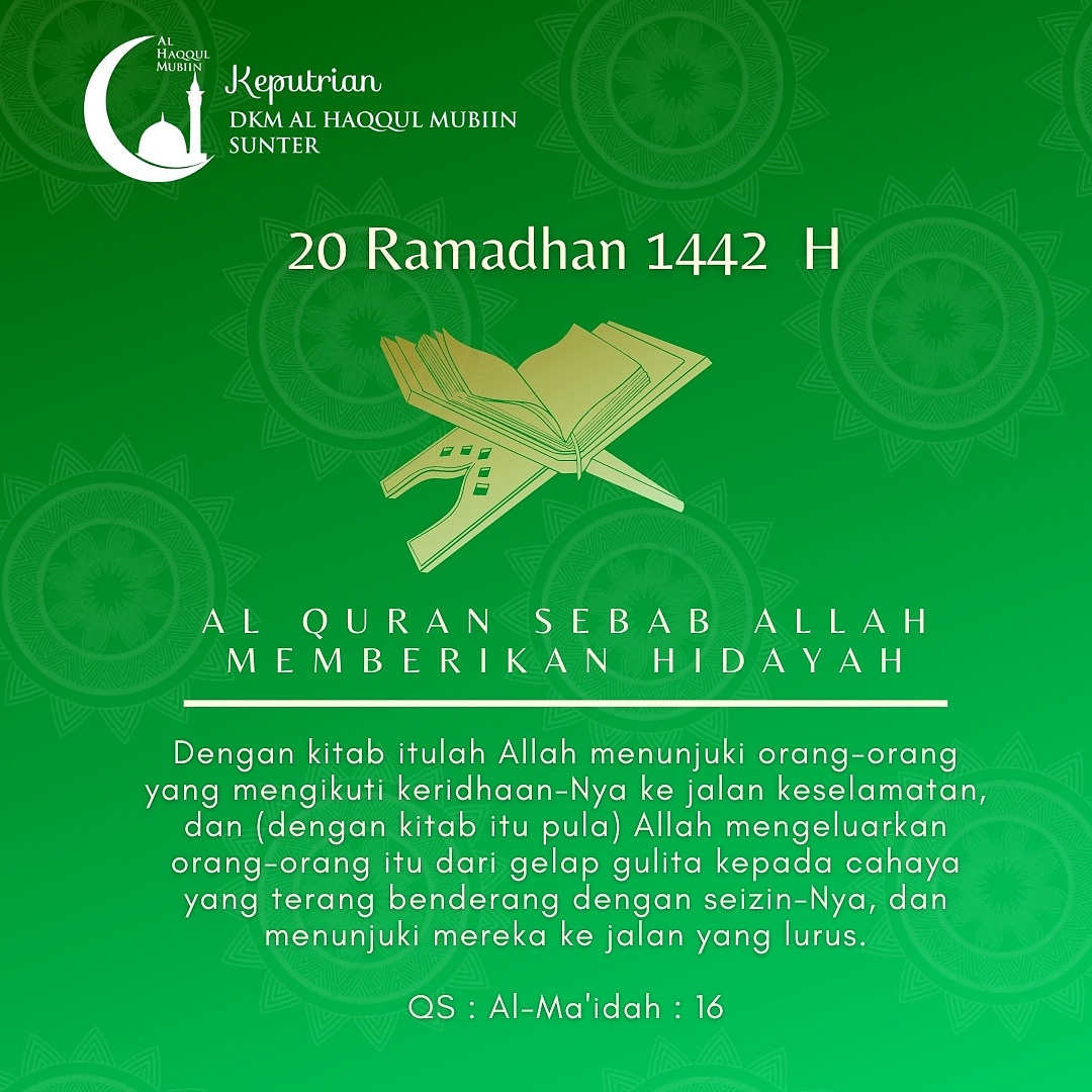 4 tahun yang lalu PublikKajilah Al Qur'an Karena Dengan Sebab Kita Membaca nya , Mentadaburi nya dan Mengamalkannya Allah Turunkan Terus HidayahNya