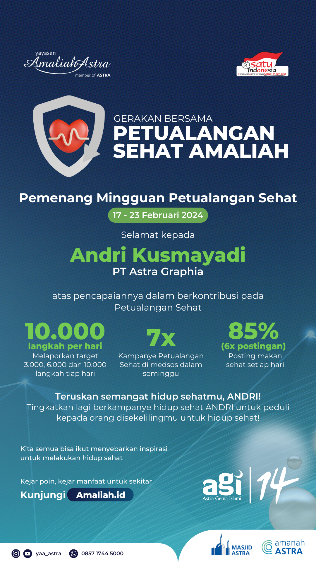 - silakan klaim AGIcoin yang sudah bisa diklaim hari ini: punya AstraPay, ikut Petualangan Sehat Amaliah, ikut Zero Waste Amaliah, posting di medsos tentang AGI, kirim artikel persiapan tim Kamu untuk tanding besok
