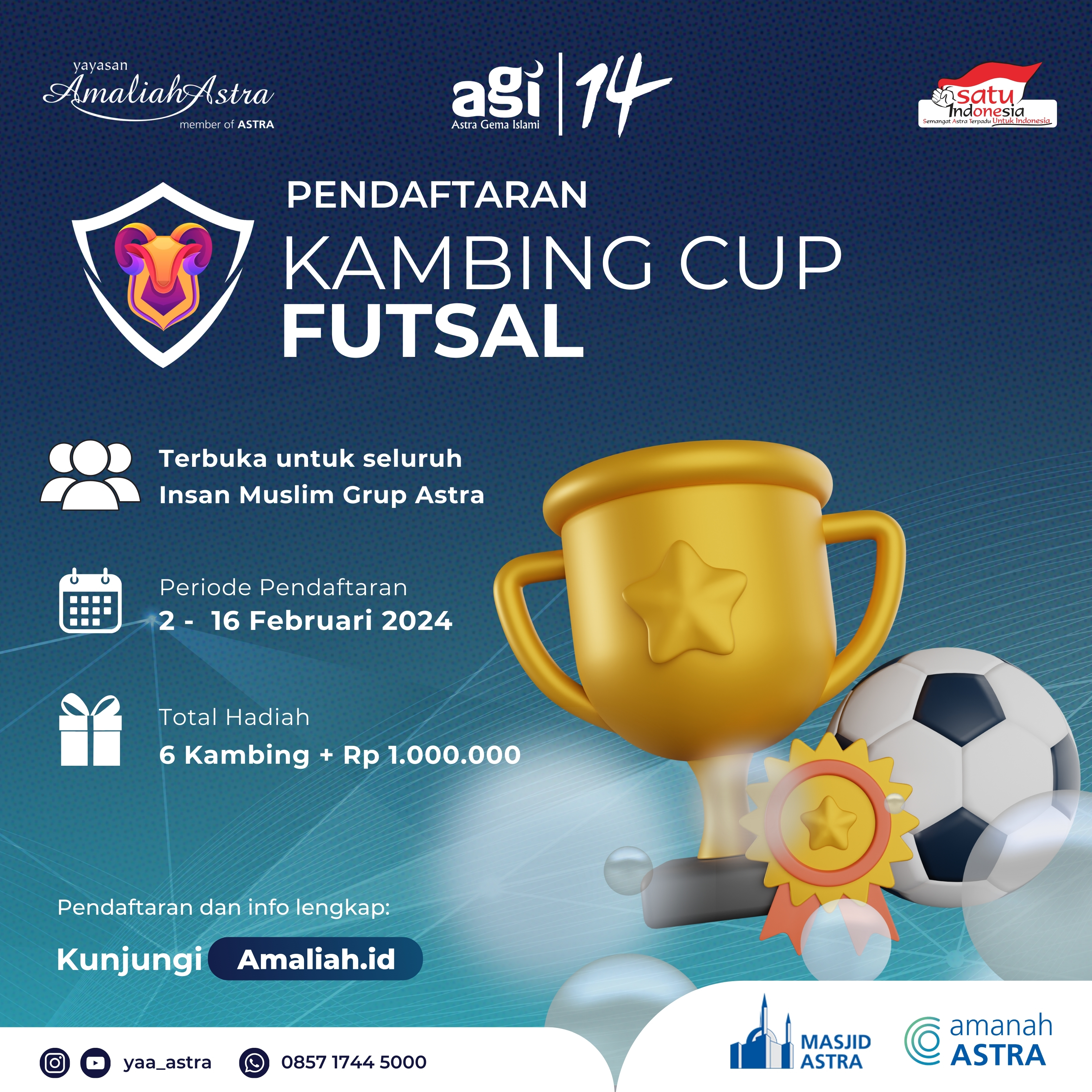 Kambing Cup kembali hadir memeriahkan Astra Gema Islami 14 ditahun 2024.Terimakasih atas antusias peserta di Kambing Cup tahun 2023, kami semakin berbenah dan dengan bangga menghadirkan.....