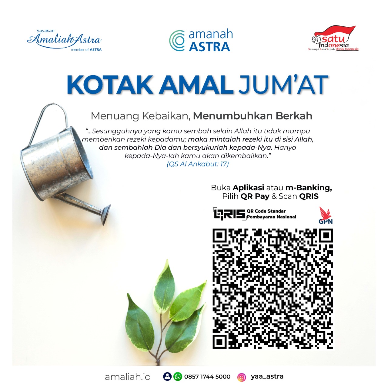 Yayasan Amaliah Astra posted 3 years ago PublicKotak Amal Jum'at Bersiap menuju Masjid. Kurang afdhol kalau tak mengisi kotak amalnya. Beramal yang kita lakukan. Ibarat menyirami tanaman, terus-menerus akan tumbuh banyak manfaatnya. Yuk! jangan sampai terlewat keberkahan di hari Jum'at ini.