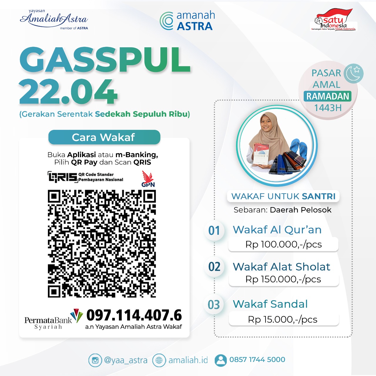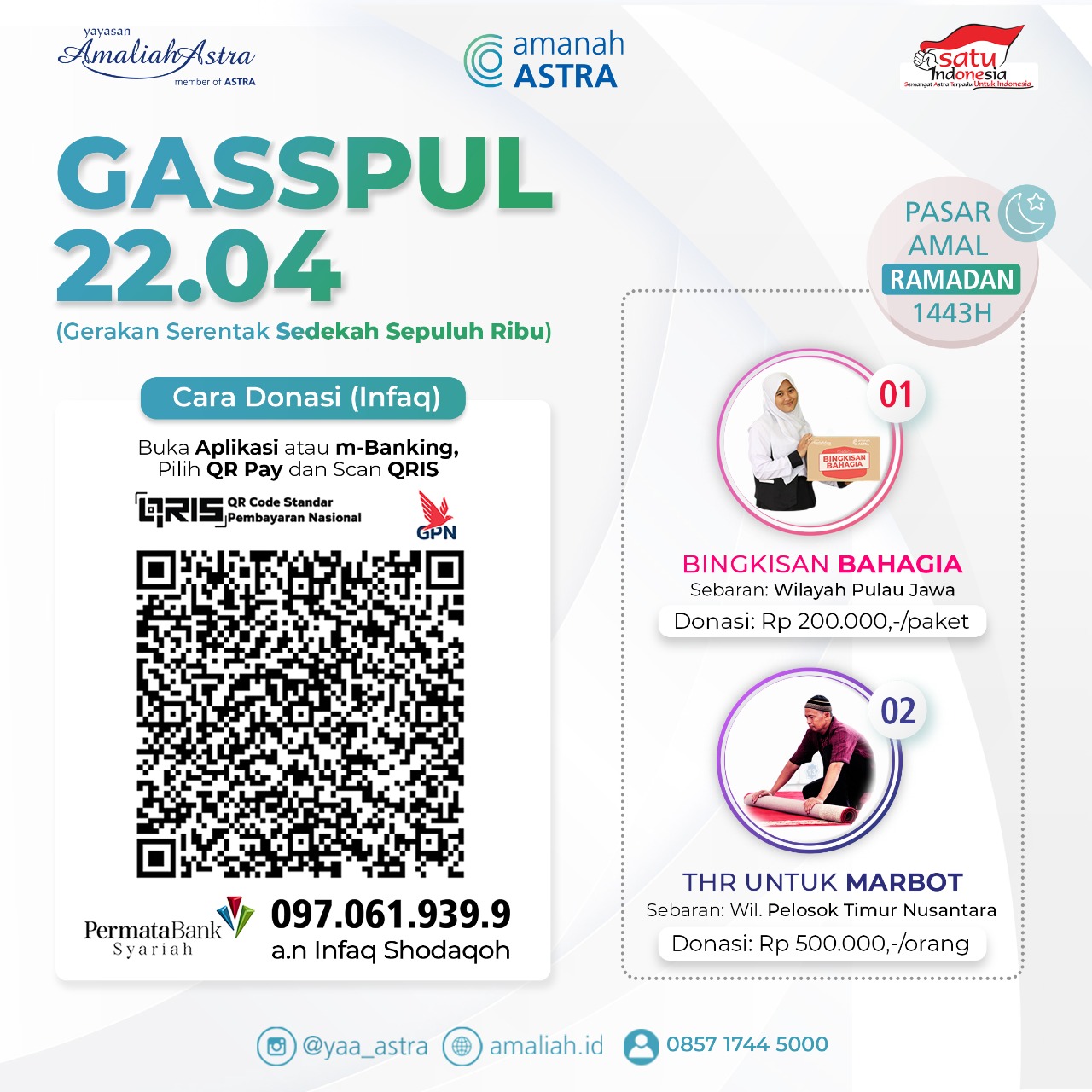 GASSPUL 22.04Yuk! Kita sebarkan kebaikan ramai-ramai. Dari satu kebaikan akan berbalas pahala berkali lipat. Apalagi kalau dikerjakan bersama. Semoga menjadi keberkahan tak terhingga untuk Para Dermawan.