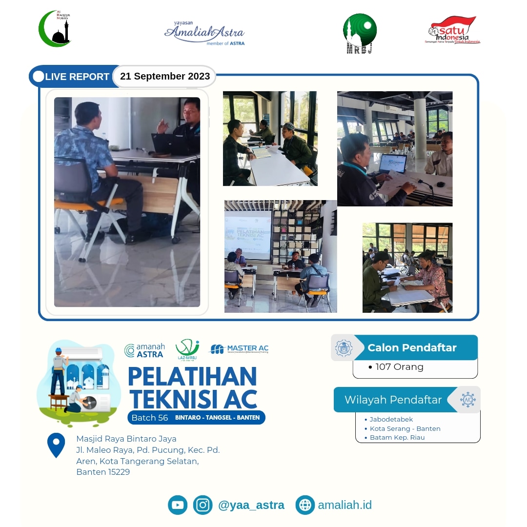 Rencananya pelatihan akan berlangsung 10 hari (25 September - 4 Oktober 2023), di Masjid Raya Bintaro Jaya (MRBJ) Tangerang Selatan. Ke depannya, MRBJ komitmen untuk membantu teknisi dengan menghubungkan ke konsumen di wilayah Bintaro dan sekitarnya.