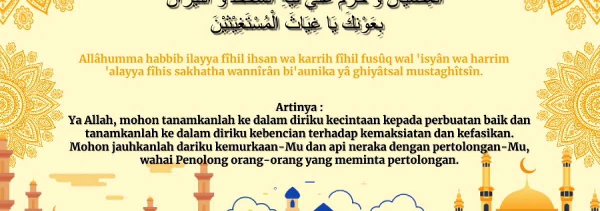 Ya Allah, mohon tanamkanlah ke dalam diriku kecintaan kepada perbuatan baik dan tanamkanlah ke dalam diriku kebencian terhadap kemaksiatan dan kefasikan. Mohon jauhkanlah dariku kemurkaan-Mu dan api neraka dengan pertolongan-Mu, wahai Penolong orang-orang yang meminta pertolongan.