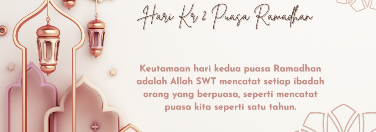 Hari ke-2 Puasa Ramadhan                                                                                                                        Keutamaan hari kedua puasa Ramadhan adalah Allah SWT mencatat setiap ibadah orang yang berpuasa, seperti mencatat puasa kita seperti satu tahun.#AGI2022