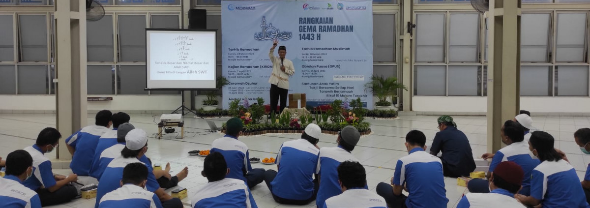 Kamis, 7 April 2022. Panitia Gema Ramadhan 1443 H menyelenggarakan Kajian Ramadhan 1443 dengan tema Manajemen Waktu Menjadi Pribadi yang Shalih dan Mushlih yang dibawakan oleh Ust. Muhammad Apud Kussaeri, S.Pd, bertempat di Masjid Baitussalam, PT Akebono Brake Astra Indonesia.