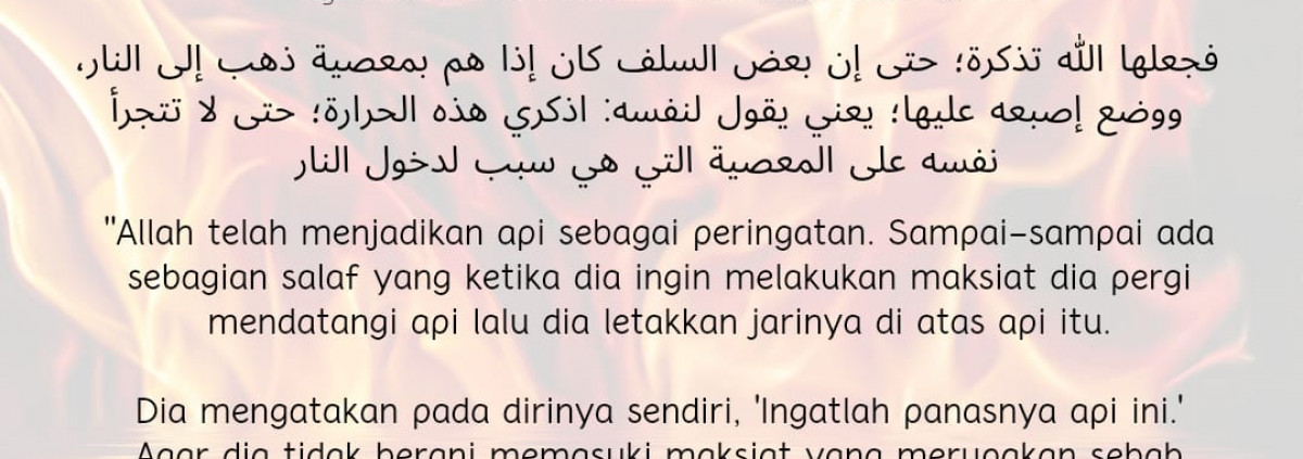 Jika ingin bermaksiat, ingatlah panasnya api neraka. Semoga Allah Ta'ala meneguhkan hati kita untuk menghindari segala bentuk kemaksiatan. Aamiin.