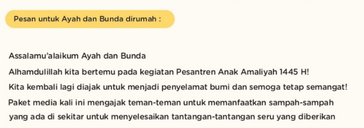 Ayah Bunda peserta PESANTREN ANAK AMALIAH, berikut surat cinta untuk Ayah Bunda :