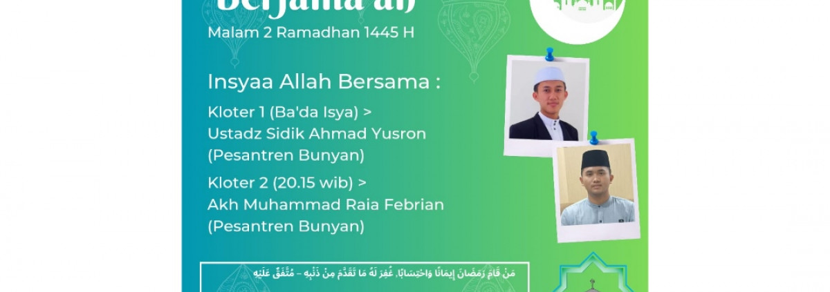 Kami mengajak seluruh jama'ah untuk bersama-sama melaksanakan Sholat Tarawih berjama'ah di Masjid Al-Kautsar. Sebagai salah satu amalan sunnah yang utama di bulan Ramadhan. Sebagaimana hadits Dari Abu Hurairah, Rasulullah shallallahu ‘alaihi wa sallam bersabda,