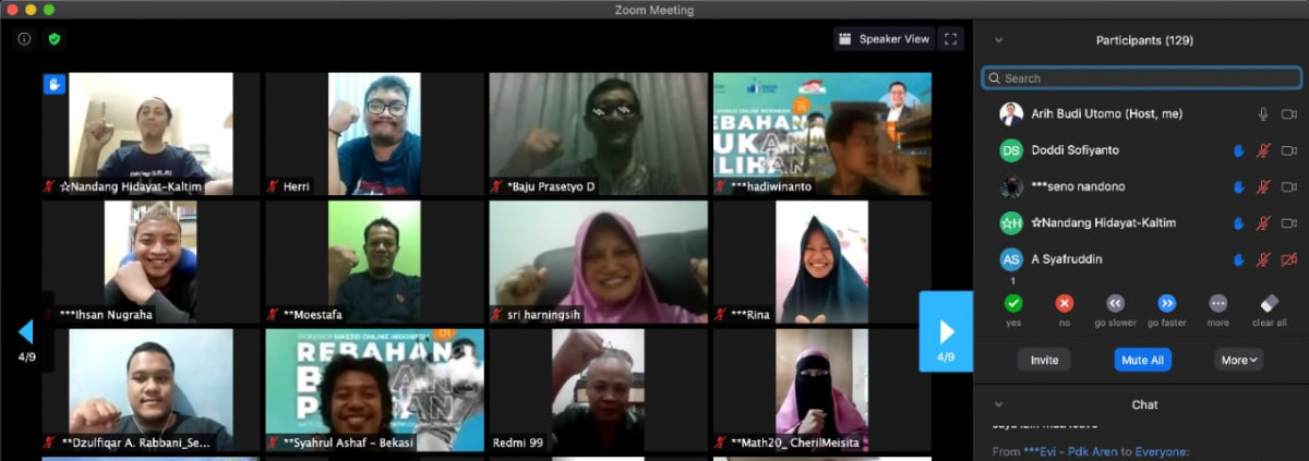 Semalam seru banget, belajar menjadi host kajian dengan Zoom, bersama mas Arih. Mas Arih yang sehari-harinya sebagai Executive Director Tantowi Yahya Public Speaking School dan juga Founder IDEAS Consulting, beberapa minggu terakhir ini juga disibukkan dengan programnya memberikan bimbingan dan pelatihan gratis kepada bapak ibu guru tentang bagaimana mengajar online secara efektif dan menarik di Program Bantu Indonesia Online. Semalam giliran 170-an peserta berkumpul di Workshop Masjid Online Indonesia, yang diselenggarakan Kamis, 8 Oktober 2019. Mulai dari Pukul 19.30 hingga 21.30, 2 jam penuh bersama mas Arih, yang di akhir sesi masih serasa nagih tidak ingin berhenti karena masih ingin belajar, ingin bertanya, masih banyak yang pengen diulik, pengen mencoba lagi.